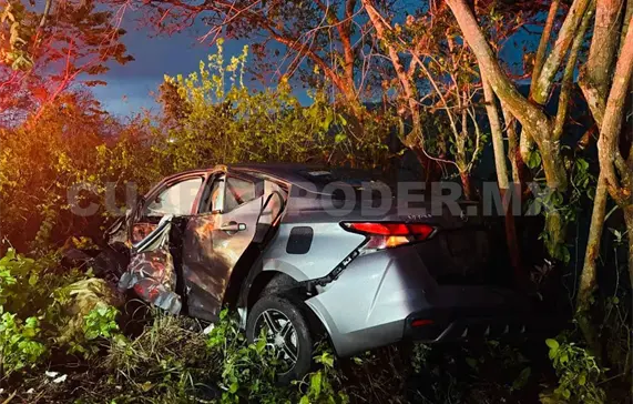 La combinación de lluvia y velocidad inadecuada derivó en un fuerte accidente vial la noche del lunes, en el camino que une a Ocozocoautla con Tuxtla Gutiérrez, específicamente entre el libramiento coiteco y el entronque de Llano San Juan.