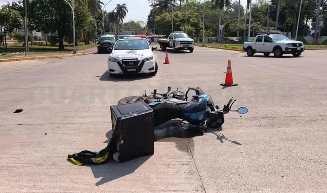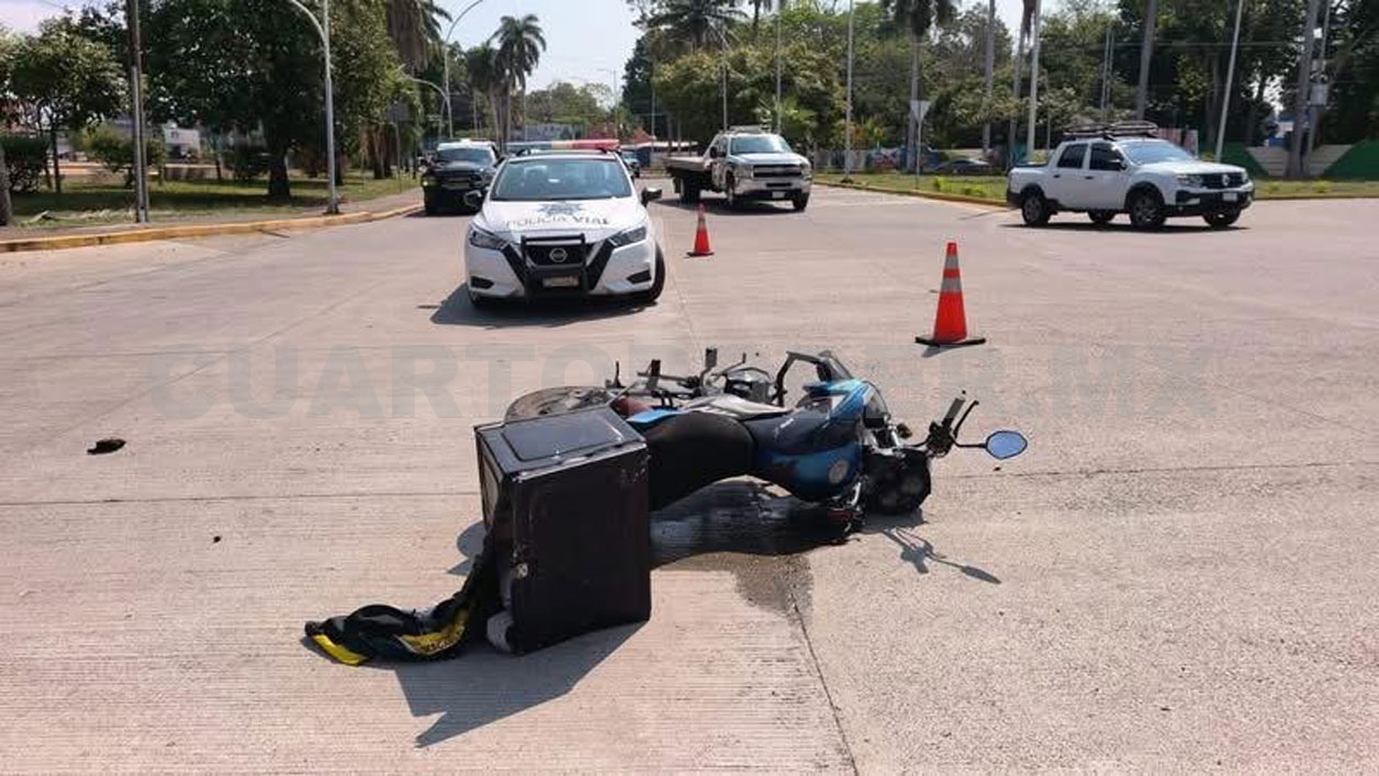 La falta de respeto a los señalamientos viales fue la causa principal de un choque entre un taxi y una motocicleta a la altura de la rotonda Belisario Domínguez, al sur de Tapachula, que dejó a dos personas lesionadas, una de las cuales tuvo que ser hospitalizada.