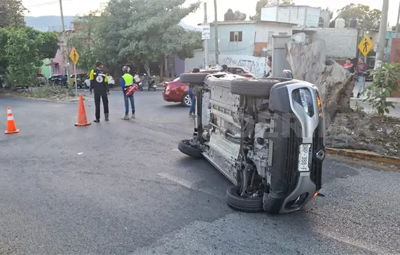 Tres vehículos particulares colisionaron aparatosamente en la colonia Infonavit Rosario, localizada en la capital Tuxtla Gutiérrez, dejando un vehículo volcado, esto durante la tarde del domingo.