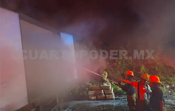 Por ello, se movilizaron los equipos de emergencia que sofocaron el fuego que ya consumía la estructura de la unidad, además de las cajas con la fruta.