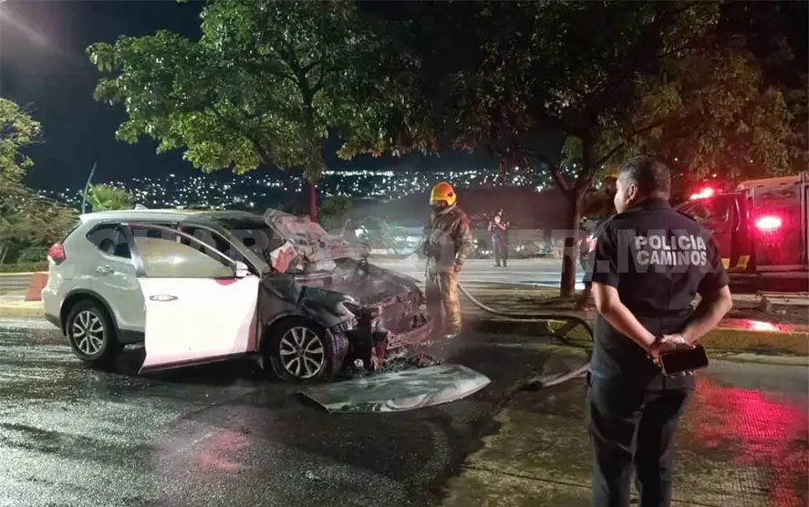 En minutos se constituyeron elementos del Heroico Cuerpo de Bomberos, quienes atendieron el auxilio y controlaron una densa humareda que provenía del motor de una camioneta Nissan tipo X-trail y con láminas de circulación del estado de Chiapas.