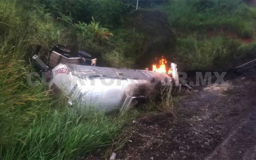 Autoridades informaron que el hecho ocurrió en el kilómetro 139 de dicha vía, en la cual automovilistas que pasaban por la zona reportaron que a las afueras de la carretera había volcada una pipa con fuego, por lo cual temieron que la situación se complicara y pusiera en riesgo la integridad de los usuarios.