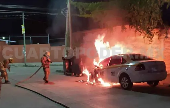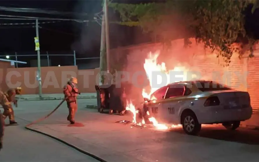 Un transporte público en modalidad de taxi quedó convertido en chatarra luego de que un presunto cortocircuito desencadenara una reacción en cadena y ardiera en llamas, en hechos ocurridos en la colonia Los Pájaros de la capital del estado.