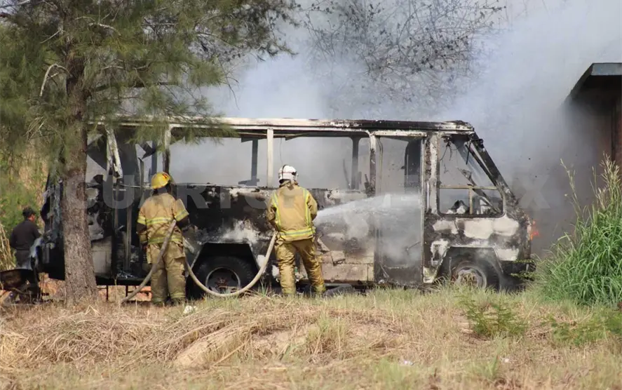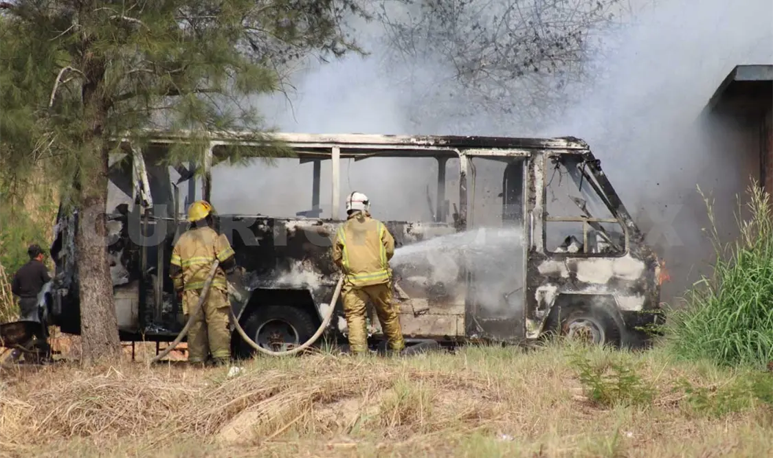 Una combi, que al parecer servía como transporte del alumnado hace algunos años, se vio envuelto en llamas la mañana del viernes al oriente del municipio de Cintalapa.
