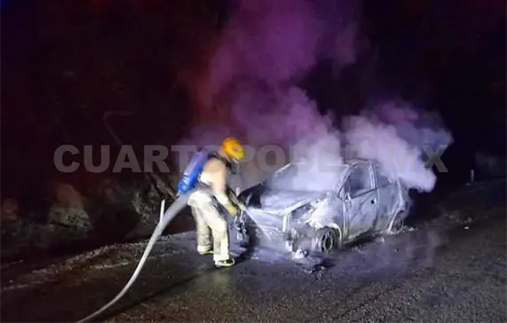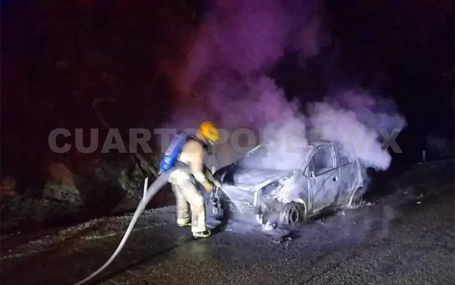 Un automóvil particular quedó reducido a chatarra luego de incendiarse en la cañada de San Fernando a la altura de La Virgencita, en la vía Tuxtla Gutiérrez-Chicoasén, el jueves.