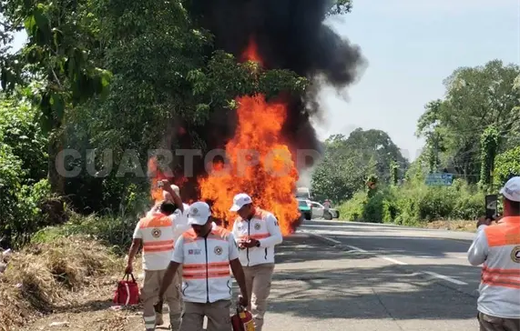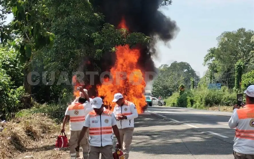 Estos lograron controlar el fuego, pero la unidad quedó convertida en chatarra, dejando daños materiales por varios miles de pesos.