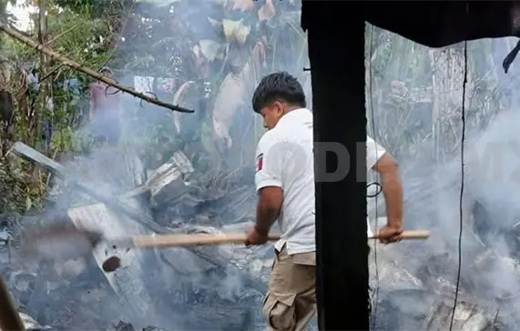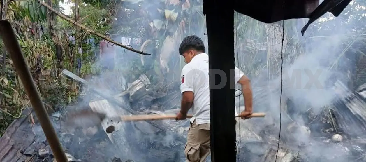 Tras el reporte, vecinos y autoridades acudieron para ayudar a controlar el fuego, pero este había abarcado prácticamente toda la casa de madera y láminas.