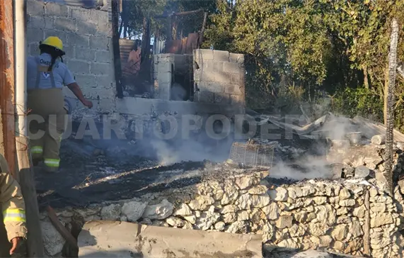 Reducida a cenizas término una vivienda ubicada sobre la carretera que comunica al basurero municipal en Comitán, luego de que por razones desconocidas comenzara a incendiarse.