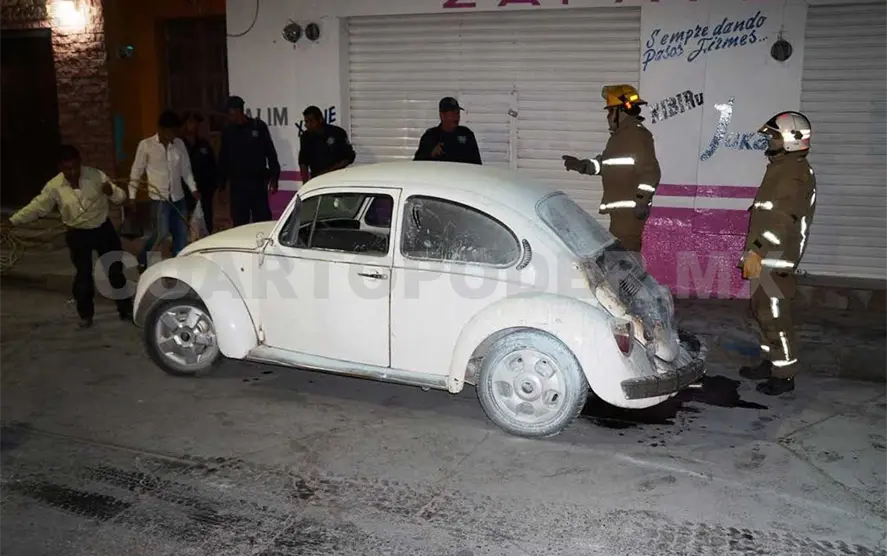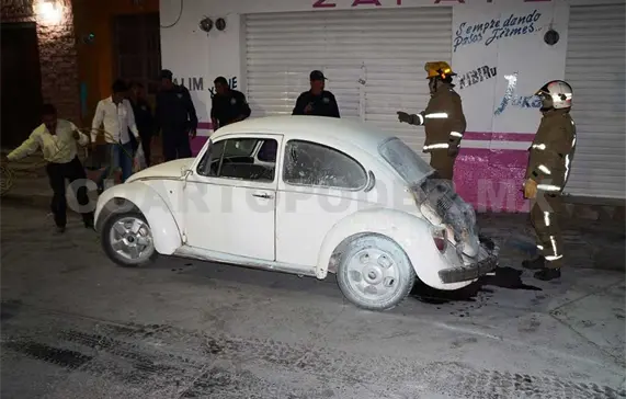 Hasta el lugar llegaron los bomberos, quienes señalaron que un corto circuito fue la causa del incendio del vehículo color blanco, marca Volkswagen tipo sedán y placas de circulación del estado de Chiapas.
