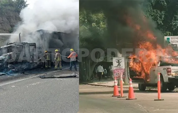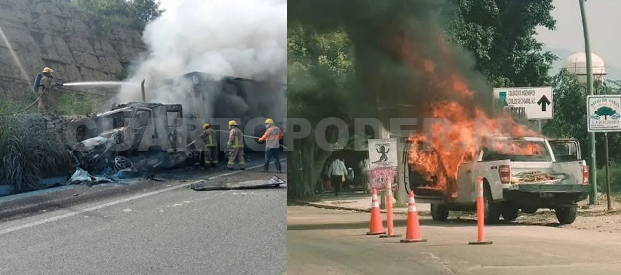 Más tarde, un presunto cortocircuito fue lo que provocó que una camioneta, propiedad de la Comisión Federal de Electricidad (CFE), ardiera sobre la carretera Panamericana, a la altura de la rotonda La Carreta.