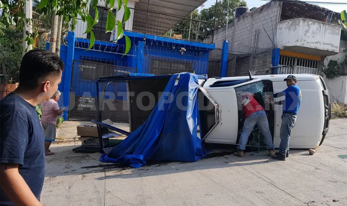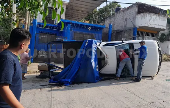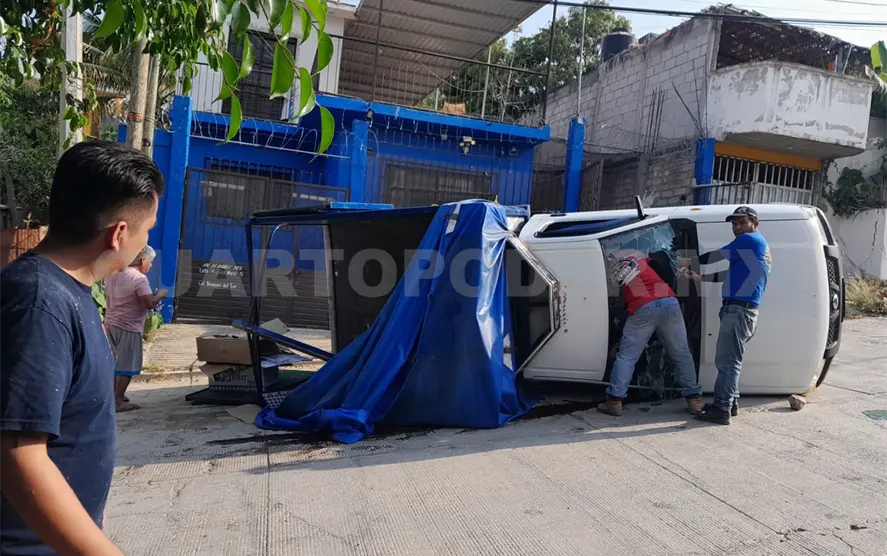 Daños materiales de consideración dejó como saldo una aparatosa volcadura en la colonia Bosques del Sur, ubicada en Tuxtla Gutiérrez.