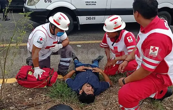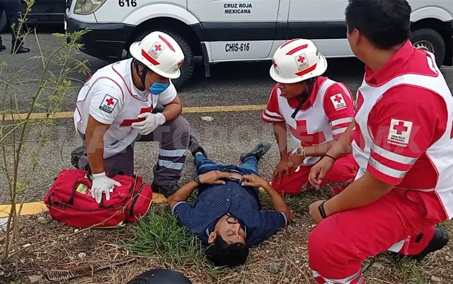 Los paramédicos de la Cruz Roja Mexicana arribaron y le brindaron los primeros auxilios, luego lo estabilizaron.
