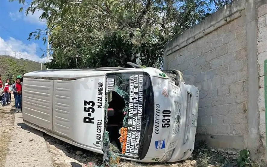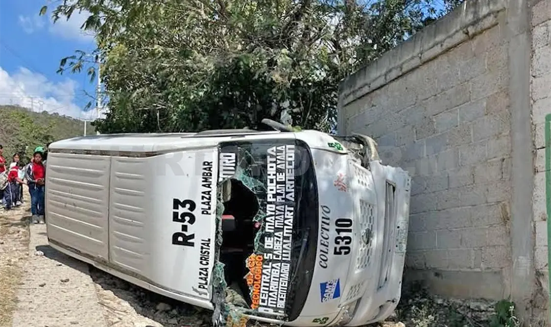 Se informó que tres personas resultaron lesionadas durante la aparatosa volcadura de un transporte público en modalidad de colectivo a la altura del ejido Enrique Peña Nieto, en Tuxtla Gutiérrez.