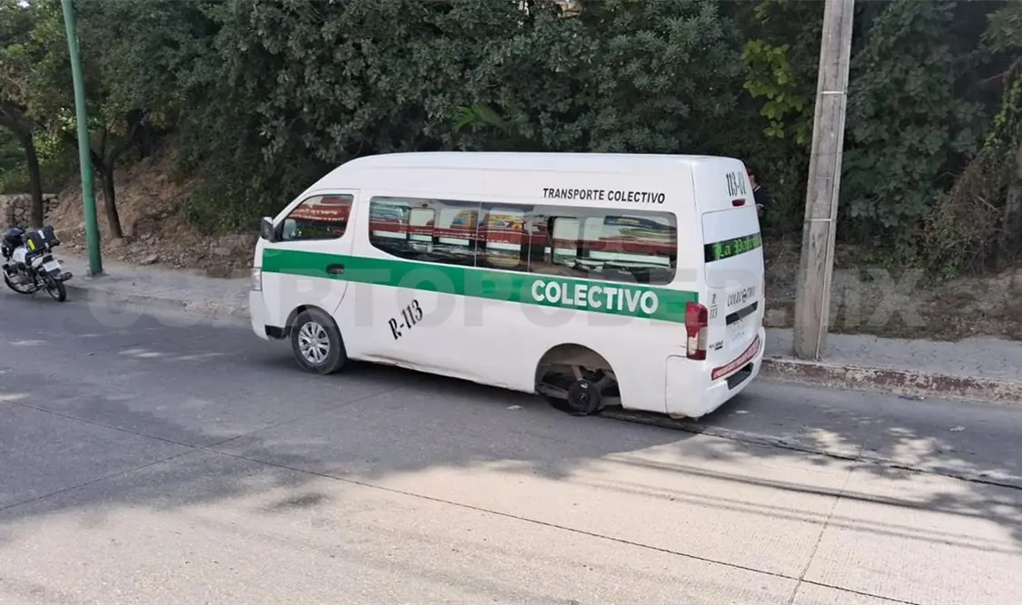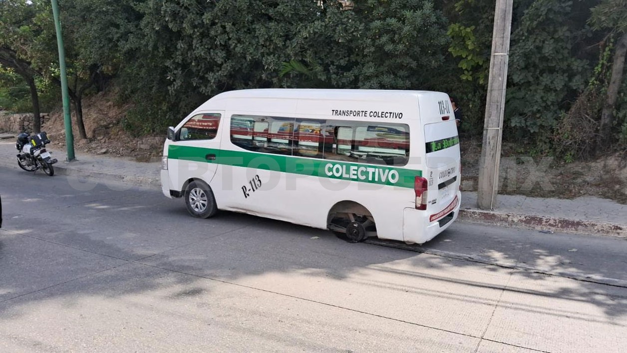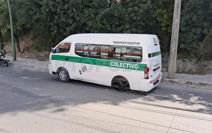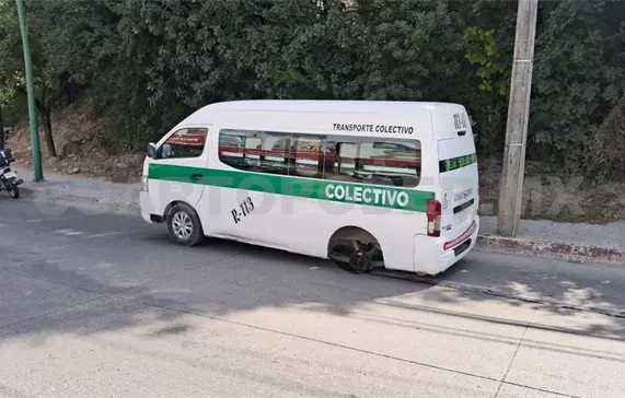Ahí, observaron a un transporte público en modalidad de colectivo de la ruta 113-02, sin una llanta trasera.