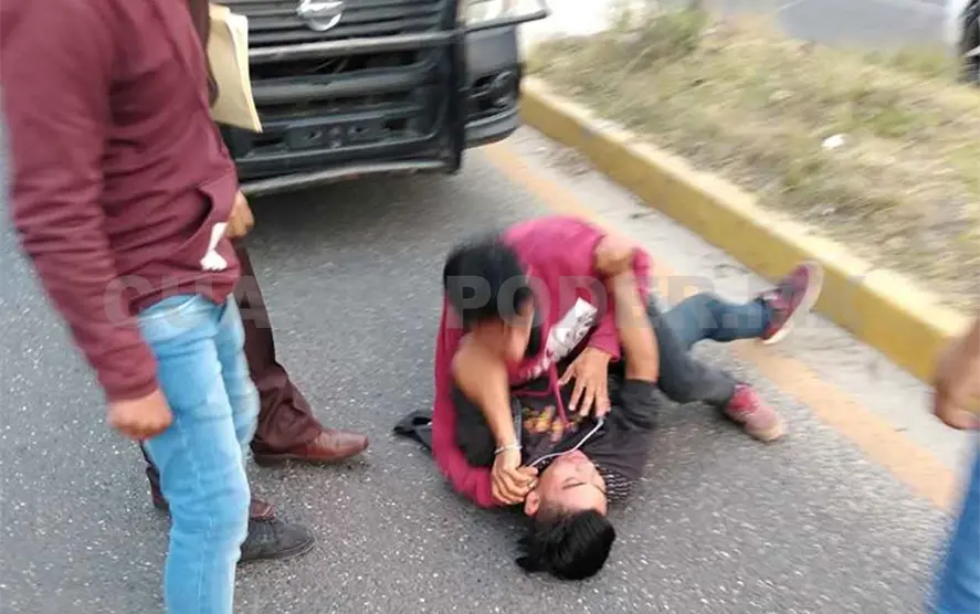 El espacio donde se desarrolló la trifulca les quedó corto para rodar de un lado a otro en la carretera y junto las unidades, pese a la duración del pleito, nunca se presentaron las autoridades.