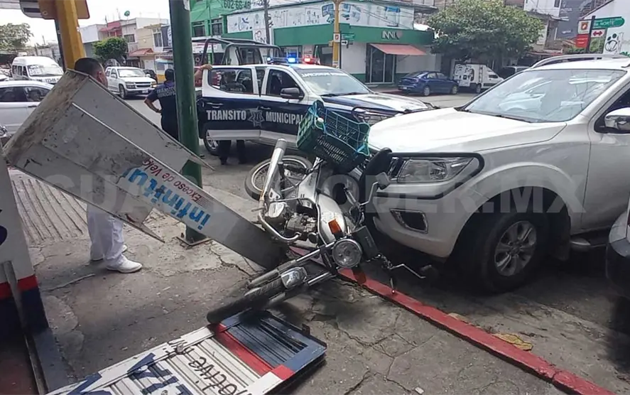 Un presunto olvido al colocar el freno de mano hizo que el conductor de una camioneta provocara un percance automovilístico sobre la 5.ª avenida Norte, entre 2.ª y 3.ª calle Oriente del barrio San Jacinto en la capital del estado.