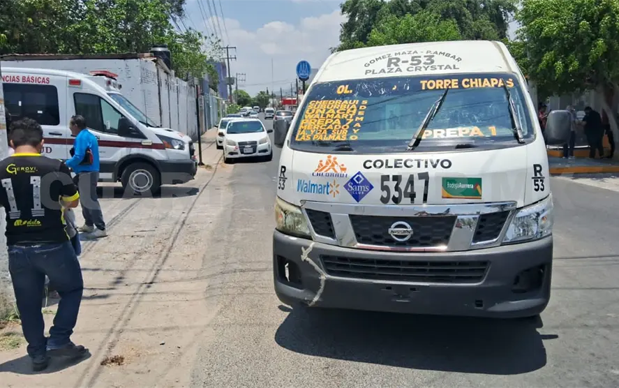 Dos lesionados y daños materiales considerables dejó como saldo un accidente de tránsito entre una ambulancia de la Secretaría de Salud y una unidad del transporte público de la ruta 5347, en el cruce de la avenida Presa Cecilio del Valle y el bulevar Presa Novillo, en la colonia Las Palmas Electricistas, al norte oriente de la capital Tuxtla Gutiérrez.