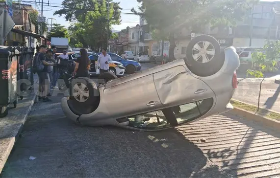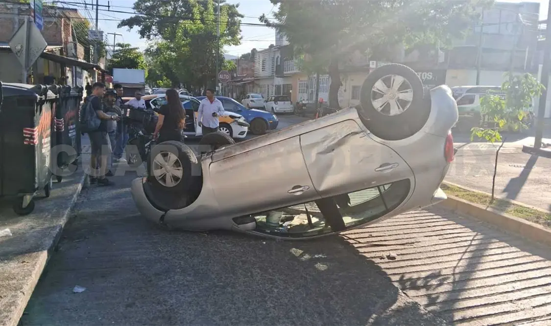 Del fuerte impacto, el March volcó con las llantas hacia arriba; además, el automovilista presentaba lesiones, al igual que una pasajera que iba en los asientos traseros del taxi.