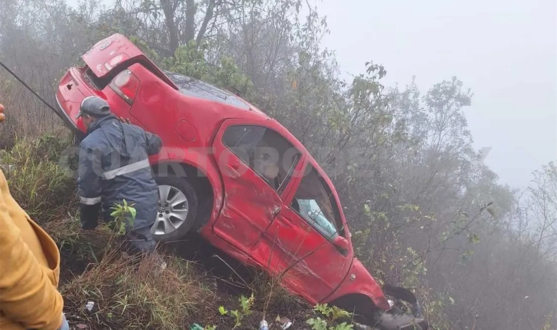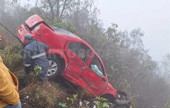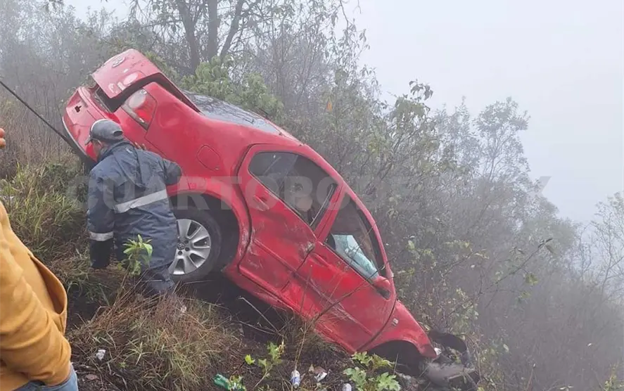 Se dijo que el conductor de la unidad perdió el control del vehículo tipo Jetta, color rojo, lo que provocó que cayera a un barranco de aproximadamente 10 metros de profundidad.
