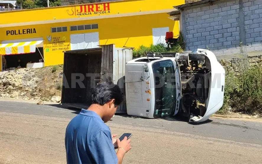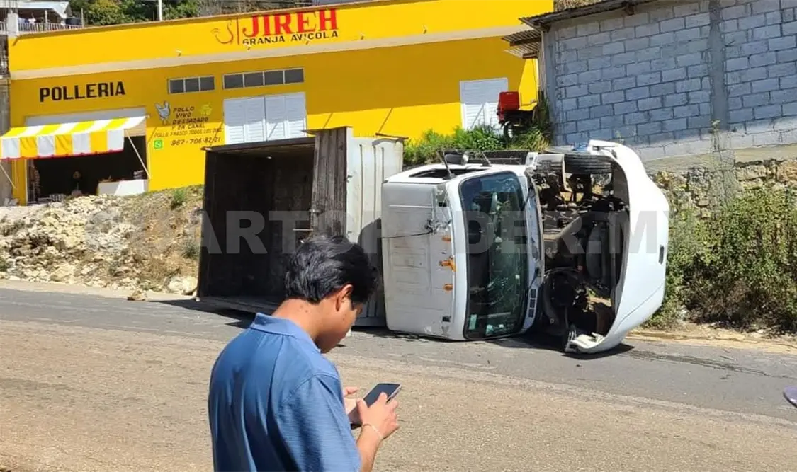 Cuantiosas pérdidas materiales fue el saldo que dejó la volcadura de un camión de volteo que, presuntamente, se quedó sin frenos mientras descendía por una pendiente en la localidad San Antonio del Monte, ubicada en la ciuddad de San Cristóbal de Las Casas.