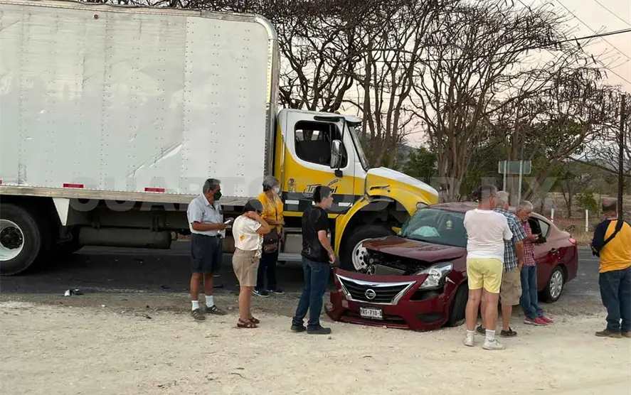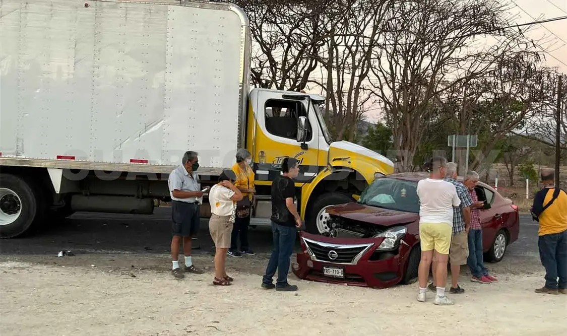 La pesada unidad se estrelló contra un automóvil de la marca Nissan tipo Versa, con láminas de circulación YRT-710-A del estado de Chiapas.