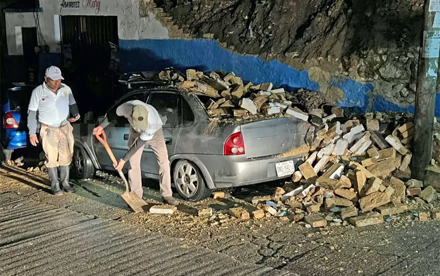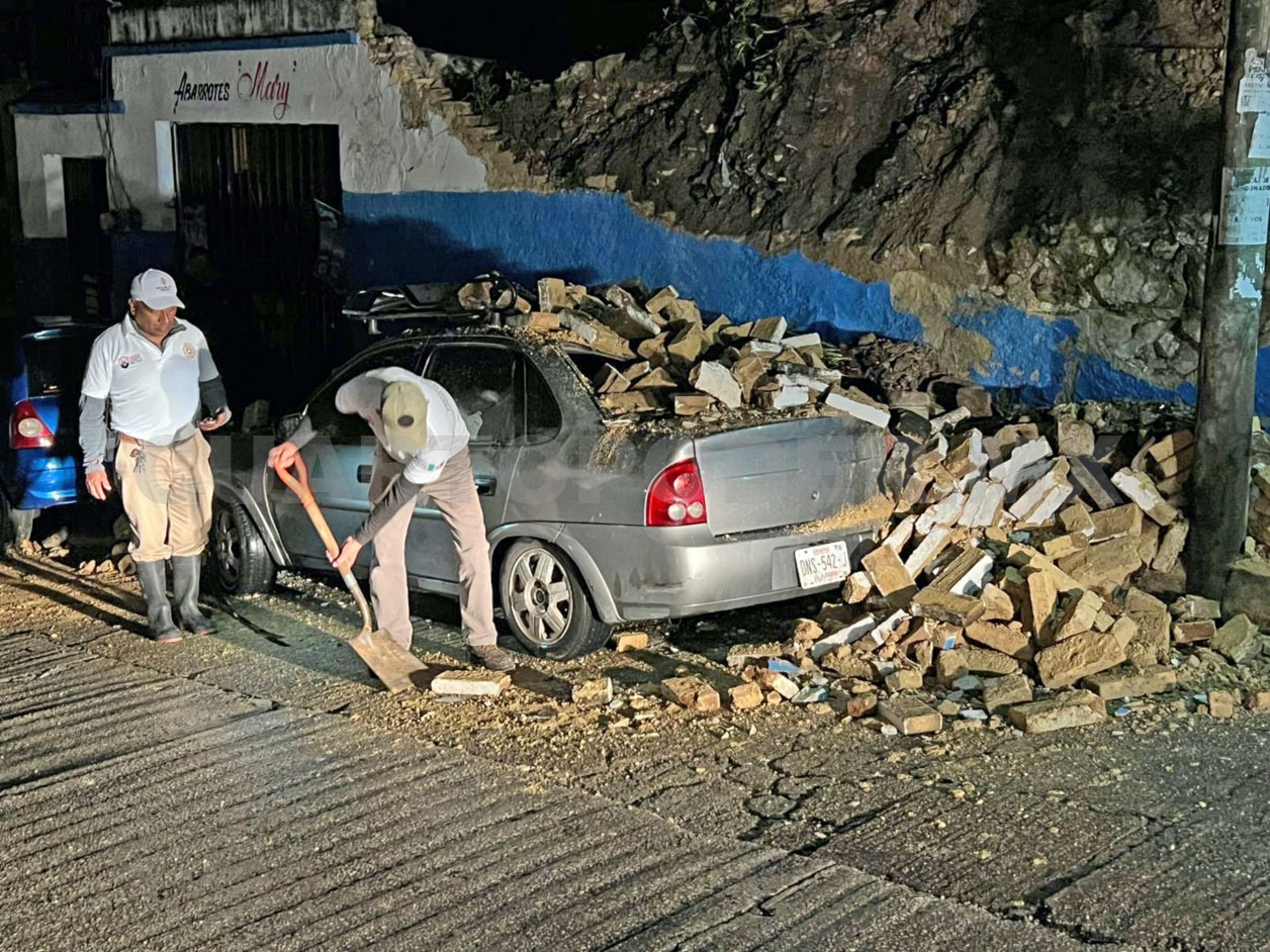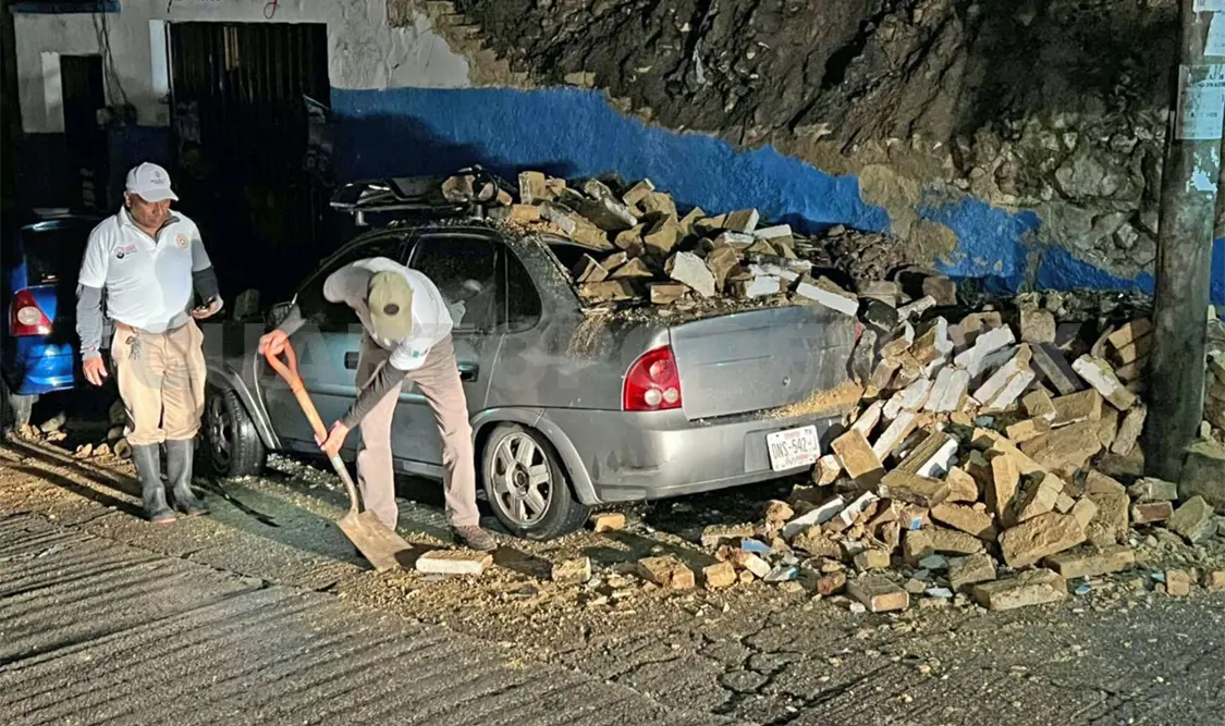 El estruendo de la caída de la barda alertó a los vecinos y aún en la oscuridad, debido a que en la ciudad hubo un apagón, salieron a observar y percatarse de que los escombros había afectado a un vehículo compacto, por lo que de inmediato solicitaron el apoyo del número de emergencias 911.
