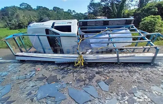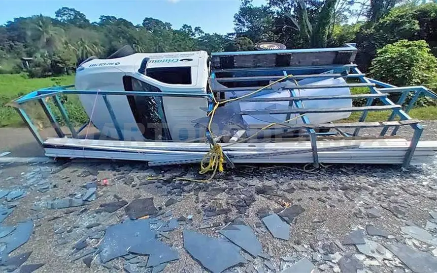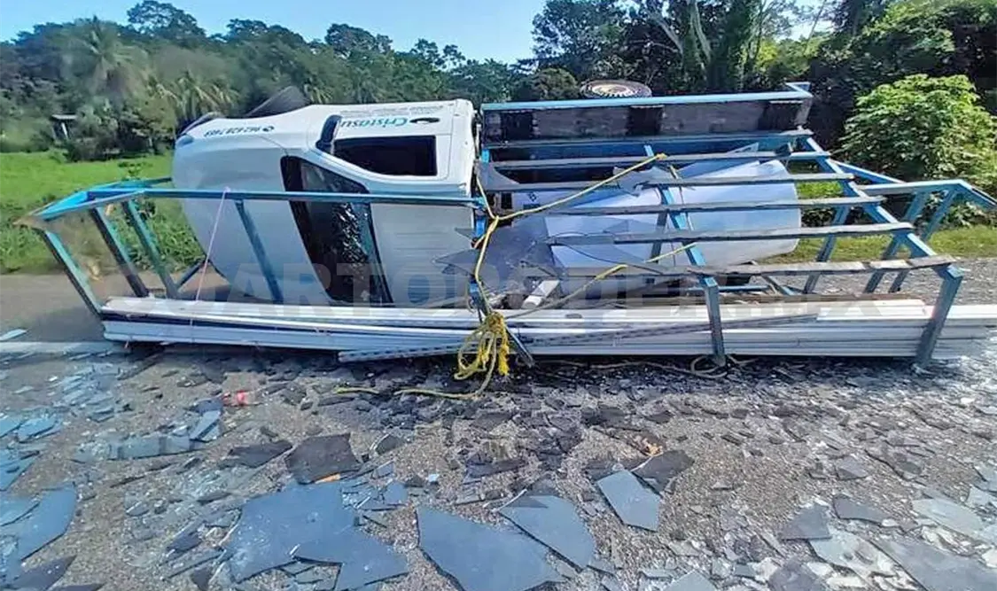 La gran cantidad de vidrios para ventanales que llevaba de la empresa Crista Sur se quebraron y quedaron diseminados sobre la carretera; tuvo que ser retirado dicho material para evitar otros accidentes.