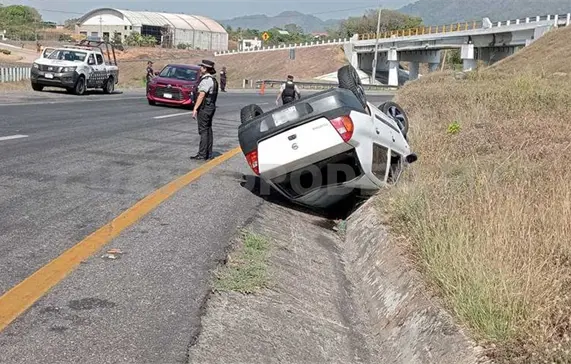 Con lesiones leves resultaron dos personas, un hombre y una mujer, al volcar el vehículo en que se desplazaban de Villa Comaltitlán hacia Tapachula.