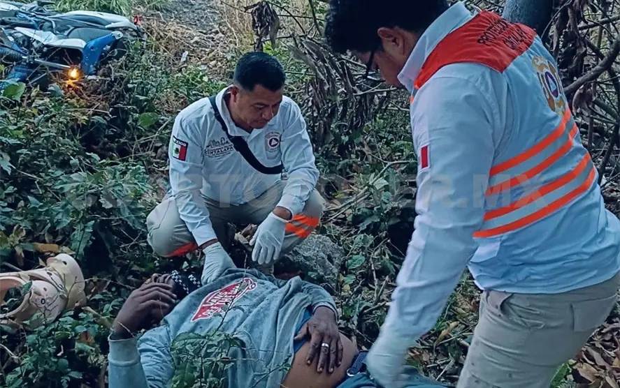 Un hombre terminó entre piedras y maleza luego de perder el control de su motocicleta en una curva antes de llegar a una de las colonias del municipio de Cintalapa, la mañana del sábado. Todo parece indicar que la pérdida de agarre de sus llantas suscitó el accidente.