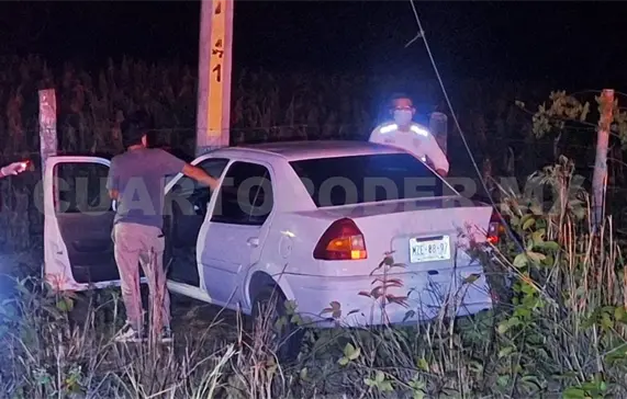 Cerca de las 20:00 horas, autoridades municipales tuvieron conocimiento de un accidente en el kilómetro 80 sobre el punto conocido como la curva de Altamira, donde se señalaba a un automóvil color blanco entre la maleza e impactado en un poste.