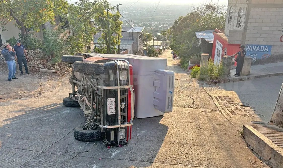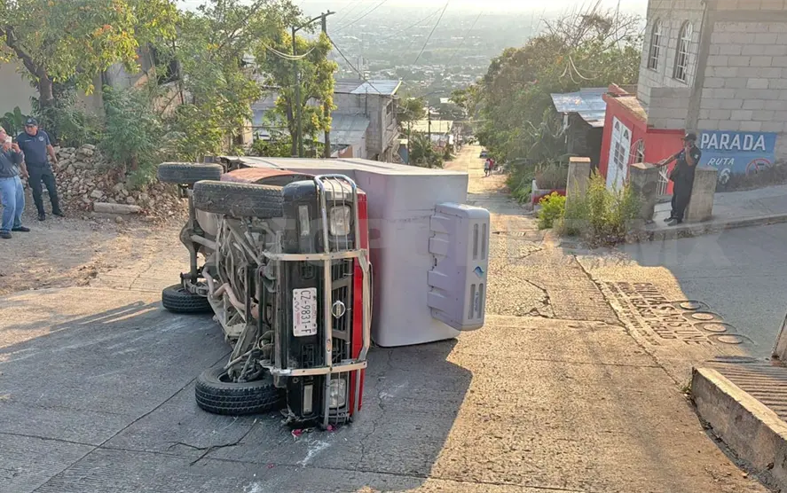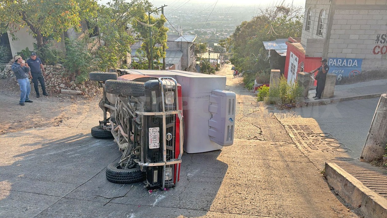 La tarde del martes una volcadura sucedió en la rampa de acceso a Patria Nueva, en Tuxtla Gutiérrez, dejó como saldo únicamente daños materiales valuados en miles de pesos, además de una momentánea afectación a la circulación vehicular en la zona.
