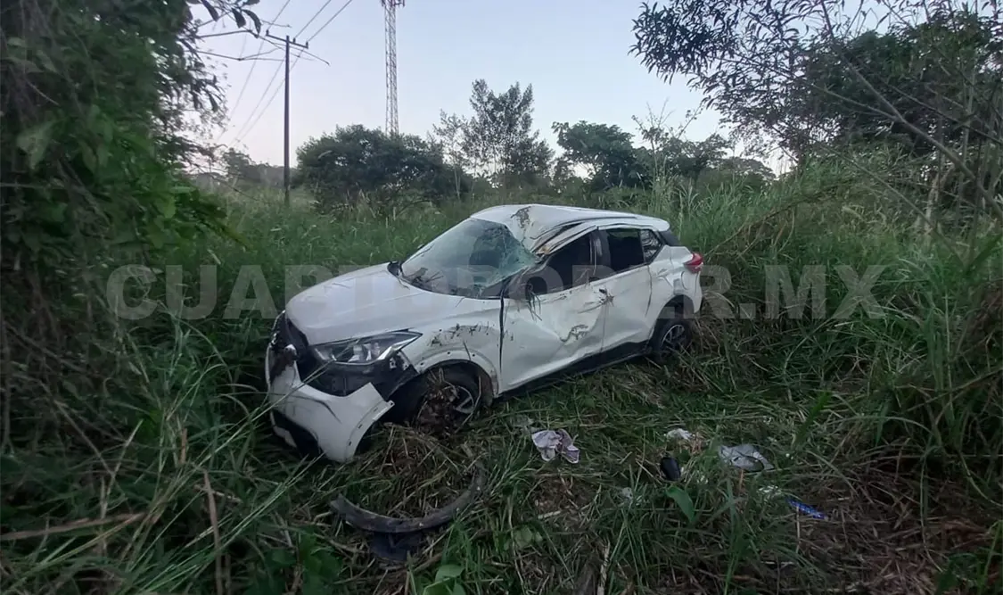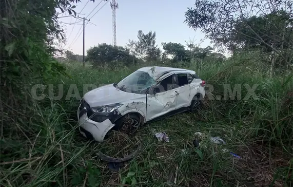 El conductor y sus acompañantes quedaron atrapados dentro del vehículo que había quedado fuera del camino, varios metros abajo de una cuesta con maleza alta y volcado sobre uno de sus costados.