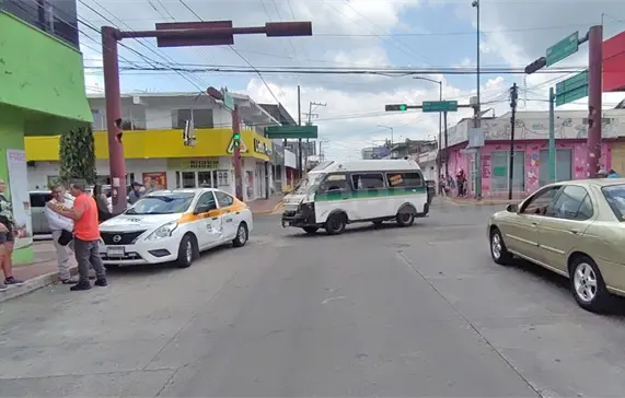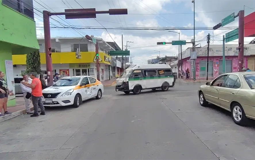 Una combi de transporte público de la ruta Galaxias-Estación, el cual se desplazaba de norte a sur, y un vehículo en modalidad de taxi que iba de oriente a poniente, se estrellaron al ignorar la luz roja del semáforo.
