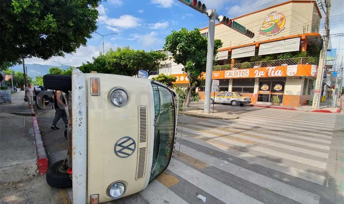 Tres personas resultaron malheridas durante un aparatoso accidente de tránsito suscitado sobre la avenida Central y 13ª Oriente, muy cerca del parque 5 de Mayo en Tuxtla Gutiérrez.