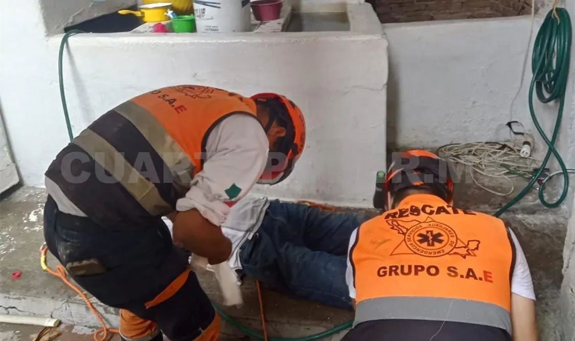 El hombre fue extraído consciente y orientado, presentando una luxación en el dedo meñique de la mano izquierda, heridas abrasivas en el pie derecho y dolor generalizado por la fuerte caída.