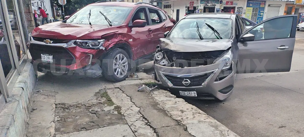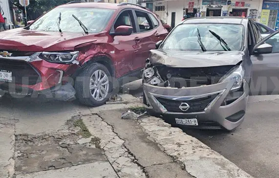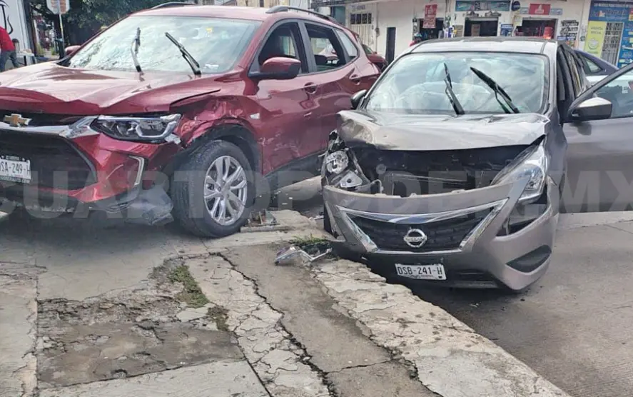 Daños materiales de alta consideración dejó como saldo un aparatoso choque entre dos vehículos particulares en el centro de Tapachula, el jueves en la mañana.