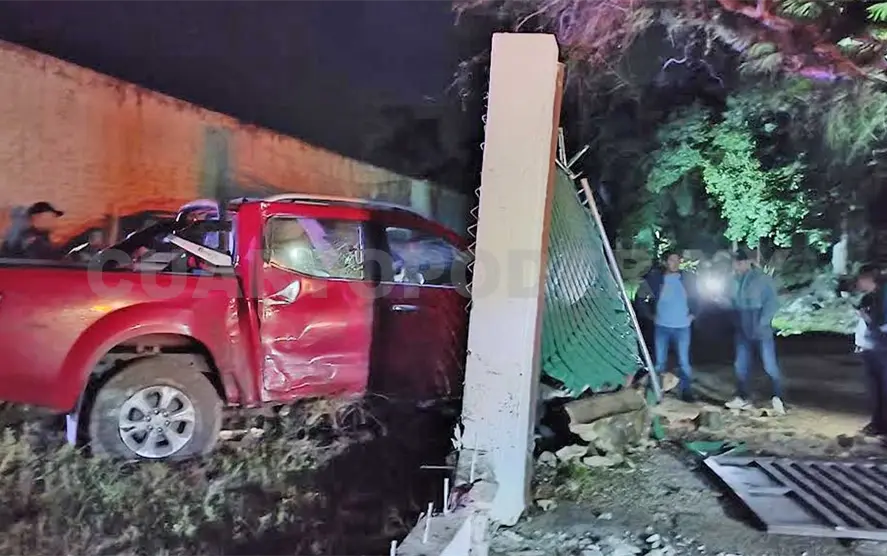 El vehículo invadió carril contrario y se salió de la vía, destruyendo a su paso el alambrado de una pensión, para terminar colisionado contra la entrada de un auto hotel y derribando el portón.