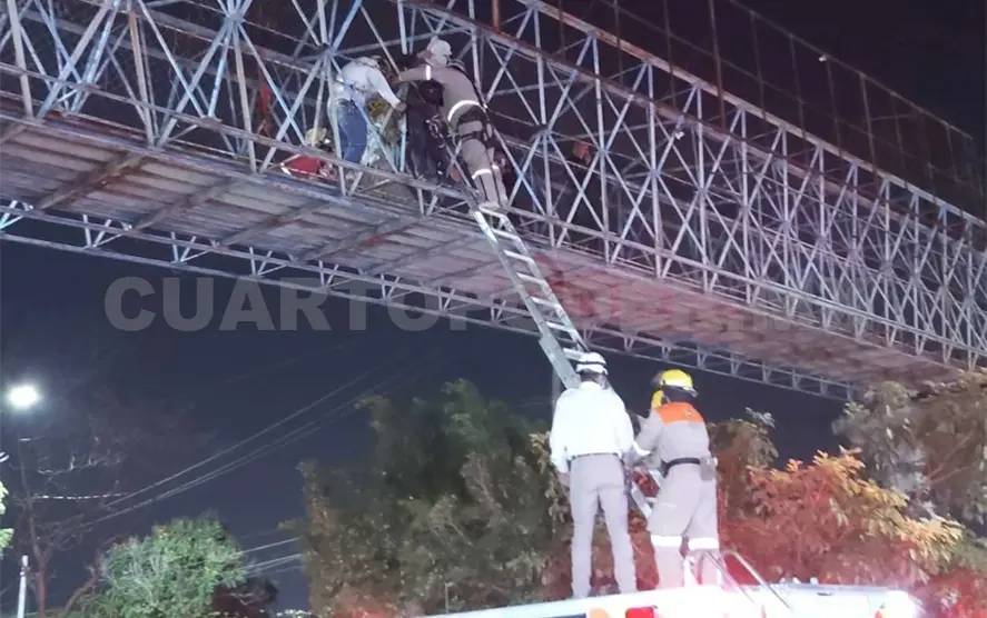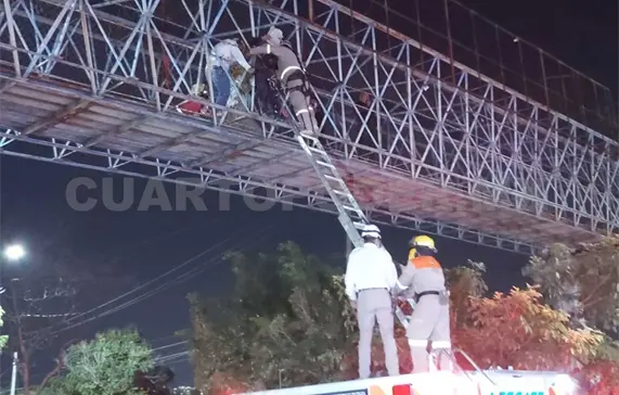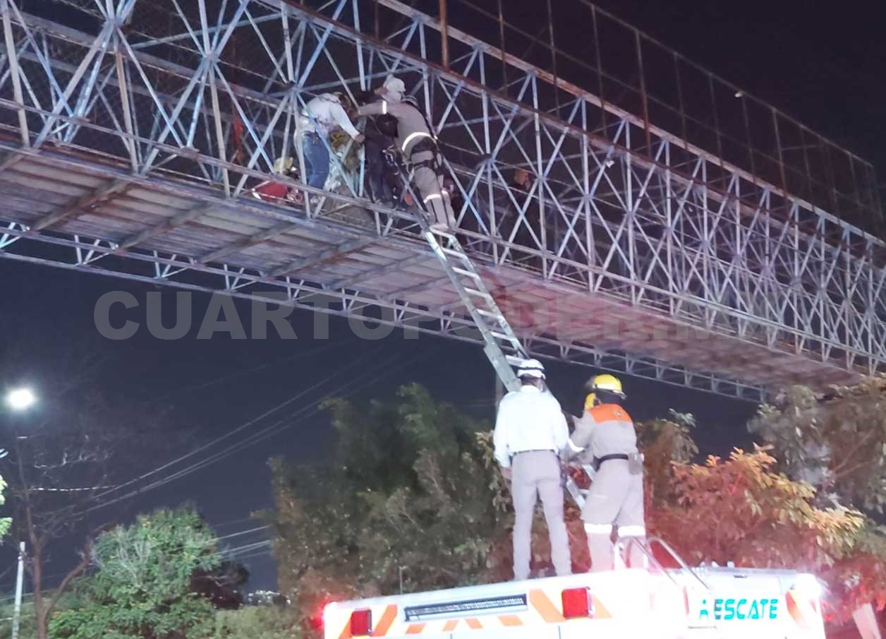 Al arribar al lugar indicado en el reporte, confirmaron el hecho y lograron amarrar al presunto suicida, quien estaba afuera de las mallas de seguridad del puente peatonal.