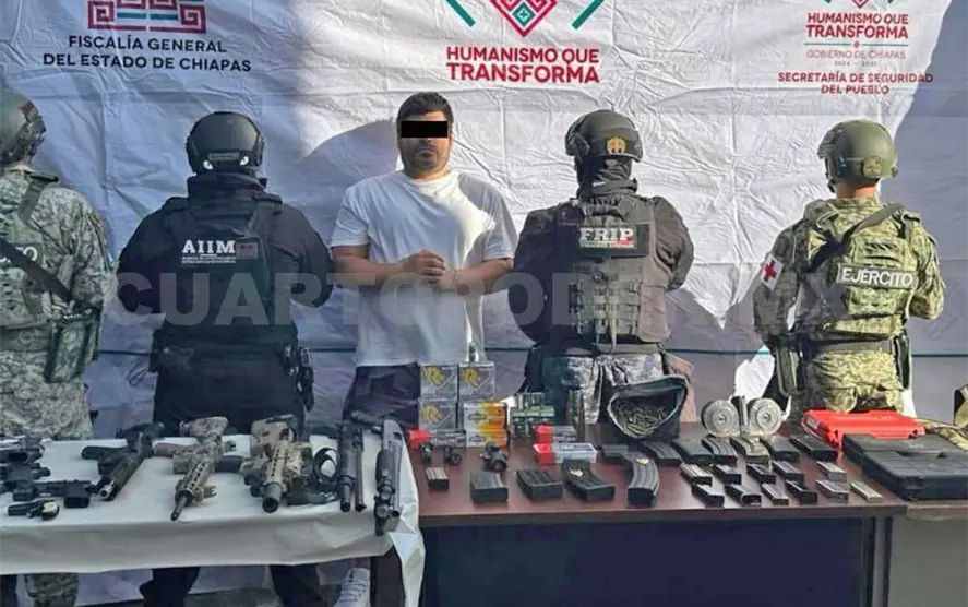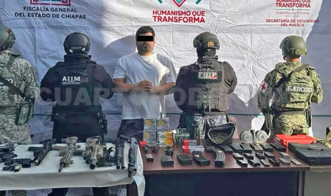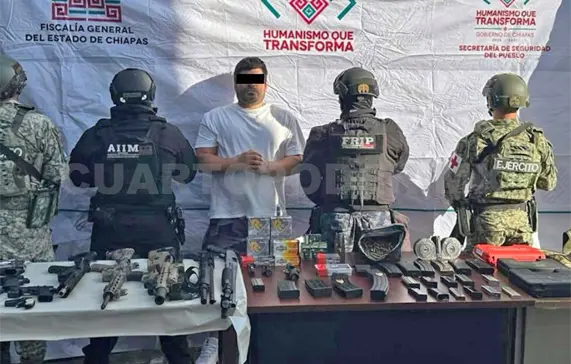 En la mañana de ayer las fuerzas estatales y federales hicieron cateos en un domicilio localizado en la 6.ª avenida Poniente, entre 8.ª y 9.ª calle Sur, en donde detuvieron al hijo de un expresidente municipal de Comitán, con armas, munición, equipo táctico y sustancias ilícitas.