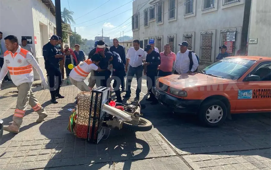 El afectado señaló que circulaba con preferencia sobre la 10.ª Sur y de pronto un taxi con número económico 09 de la ruta Jiquipilas-Cintalapa, no respetó la vialidad e impactó a la motocicleta, dejando con lesiones en el rostro al conductor.