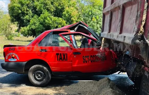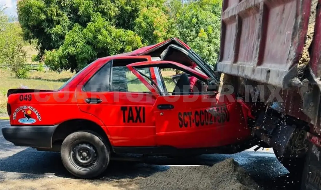 Un taxi se impactó en la parte posterior de un camión de volteo en el tramo Pijijiapan-Mapastepec, entre la colonia Valdivia y Samuel León Brindis, en la demarcación del segundo municipio, durante el sábado alrededor de las 11:48 horas.