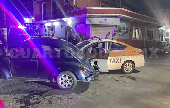 Al presentarse observaron el estado inconveniente del chofer del taxi, por lo cual lo detuvieron para consignarlo ante un agente del Ministerio Público, ordenando remolcar los vehículos al corralón en turno y poder deslindar responsabilidades en las próximas horas.
