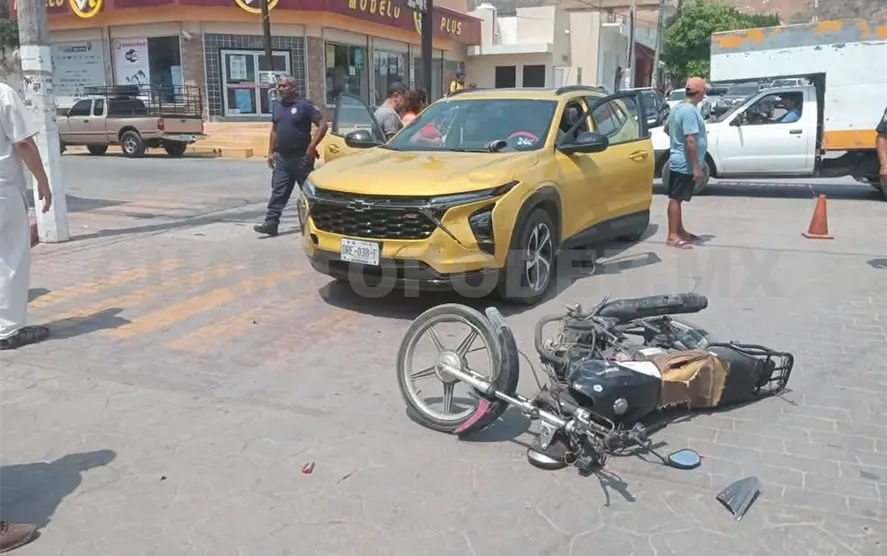 Un fuerte accidente de tránsito ocurrió la tarde del jueves en la esquina de la Presidencia Municipal de la ciudad de Arriaga, cuando una camioneta Chevrolet Trax y una motocicleta colisionaron violentamente.