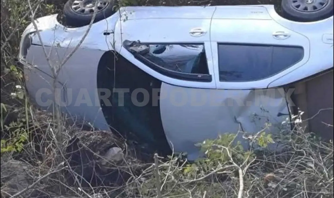 Un fuerte accidente se registró en la vía que comunica a Tzimol con Comitán, a la altura del kilómetro 4, cuando un automóvil terminó completamente destrozado al caer en un barranco de aproximadamente 10 metros de profundidad.