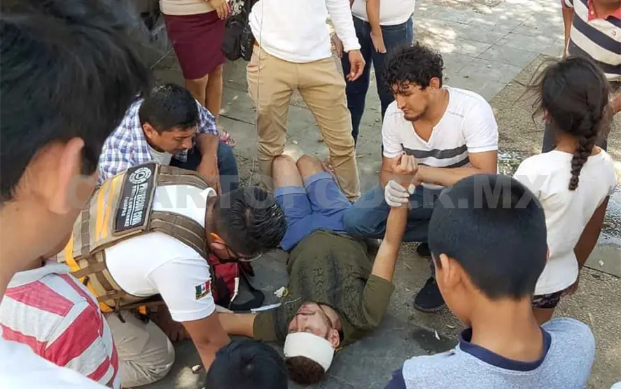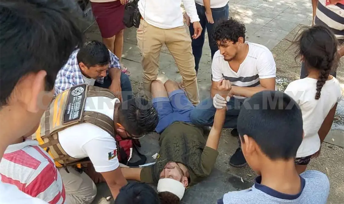 Con golpes en el rostro y una herida abierta en la cabeza fue como encontraron a un jovencito, el cual minutos antes se había resistió a un asalto y quedado tendido bocarriba en la explanada del parque Central, frente al Ayuntamiento Municipal de Tuxtla Gutiérrez.
