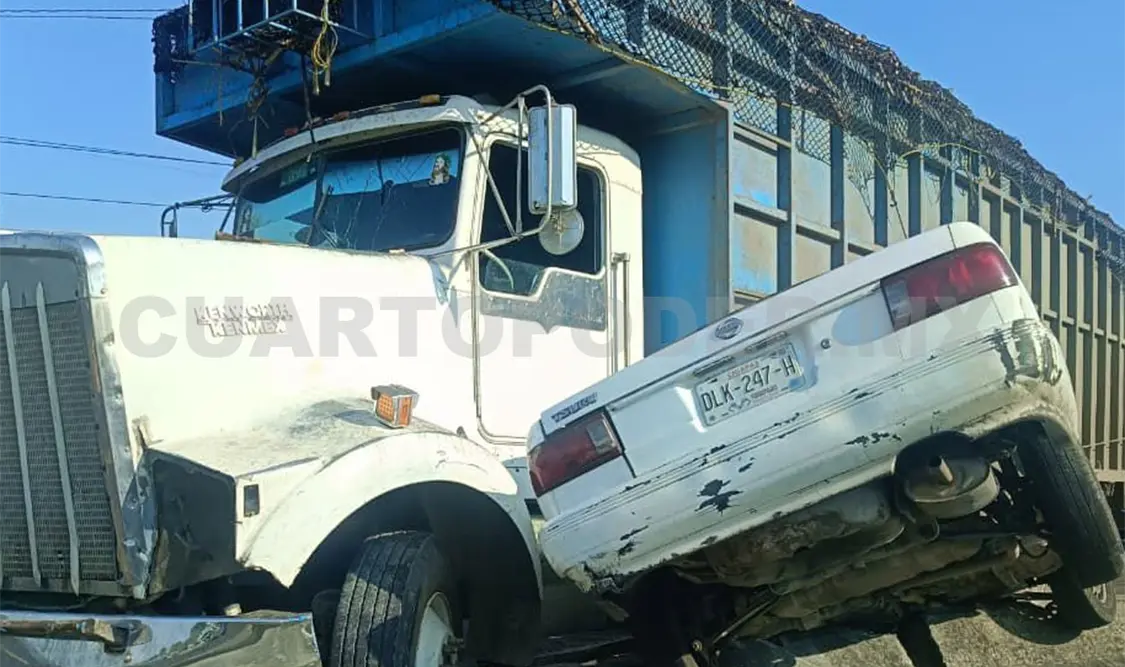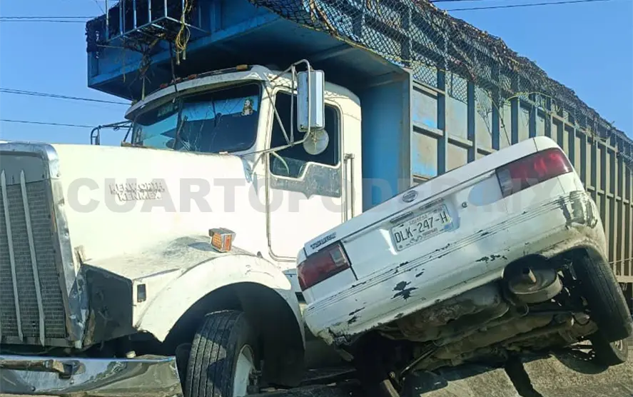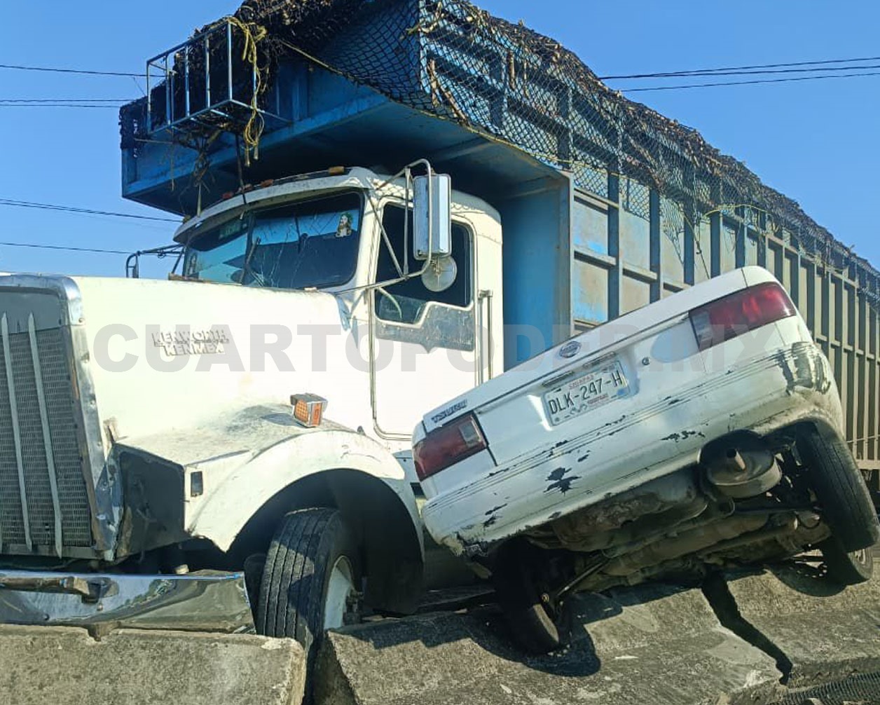 La unidad pesada era un torton que transportaba material vegetal y el sedán un Nissan Tsuru de color blanco. Destruyeron varios módulos de la estructura de contención.