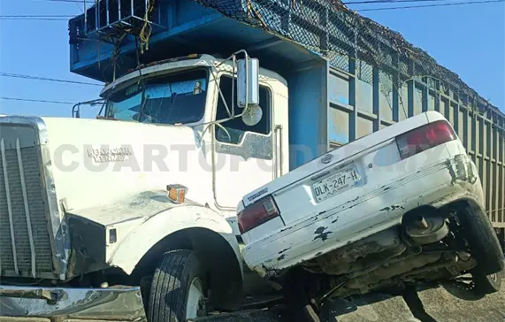 Los involucrados eran un camión de carga y un automóvil, los cuales quedaron incrustados en el muro de contención central de la vía.