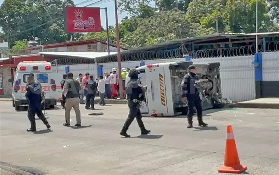 Un menor sin vida y ocho personas lesionadas fue el saldo de un fatal accidente ocurrido sobre la 20.ª calle Oriente entre 1.ª y 3.ª avenida Sur de Tapachula, entre un vehículo particular y una combi de transporte público, la cual quedó volcada.