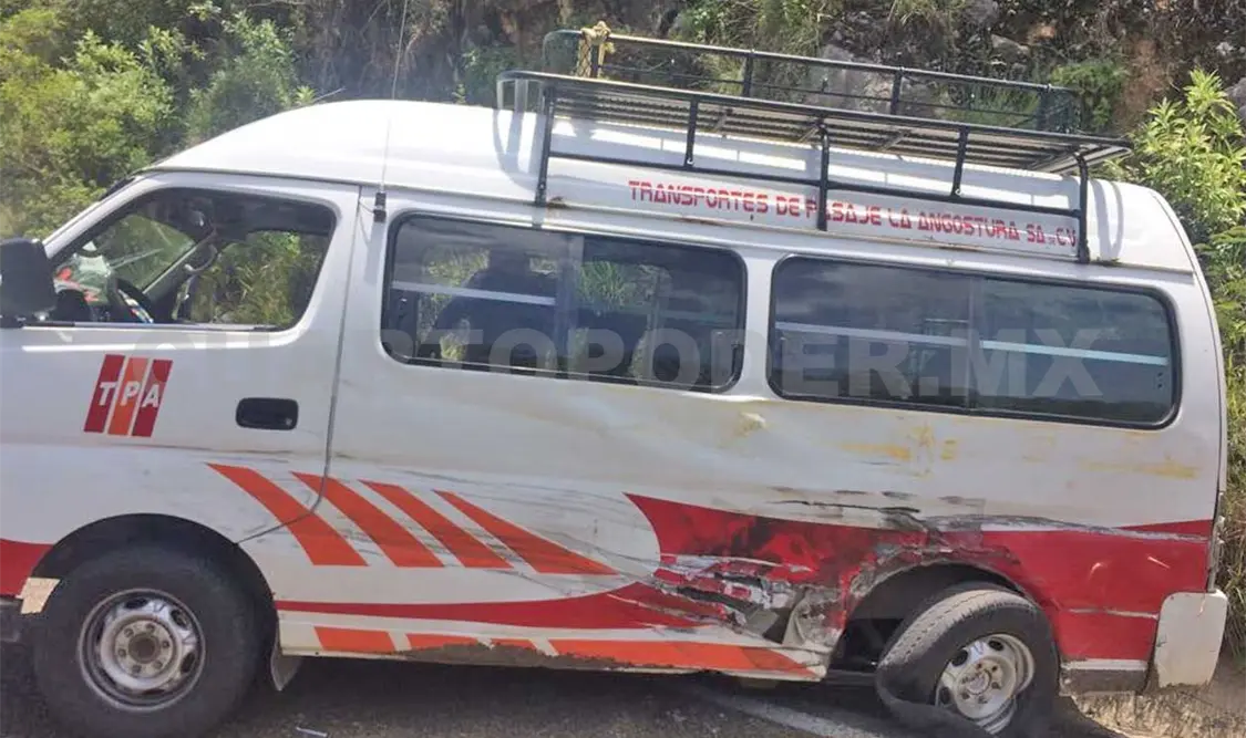 Un tráiler de ocho toneladas que se encontraba vacío invadió carril e impactó una combi del transporte público, durante la mañana de ayer en el tramo carretero que conduce al municipio de Tzimol.