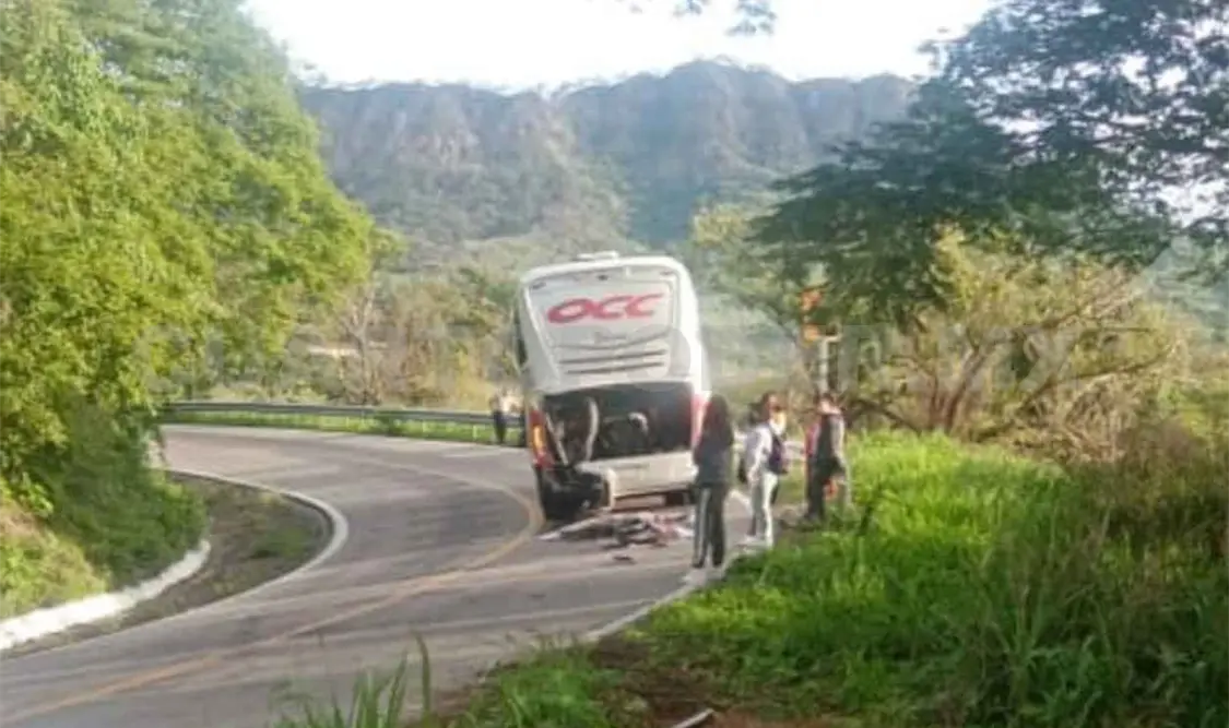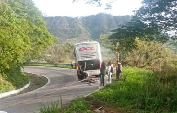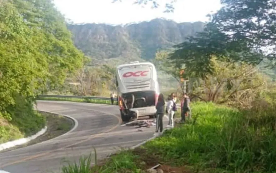 Al arribar la corporación al kilómetro 30+400 en una curva observaron que un autobús Irizar, con número económico 2218 y placas del Servicio Público Federal, tenía un golpe en la parte lateral trasera izquierda y más adelante fuera de la carretera estaba un tractocamión Kenworth, con placas del Servicio Público Federal de carga.